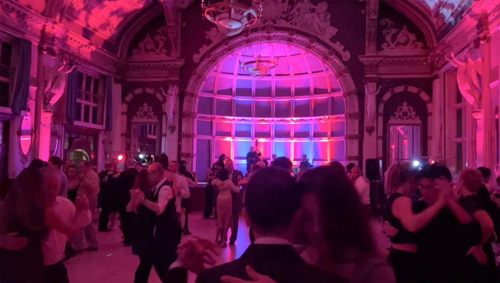 The milonga was due to finish at 2am. Two in the morning arrived … and departed; the milonga continued. At some stage, I found myself in a conga line. Don’t ask; I have literally no idea. And then this happened: