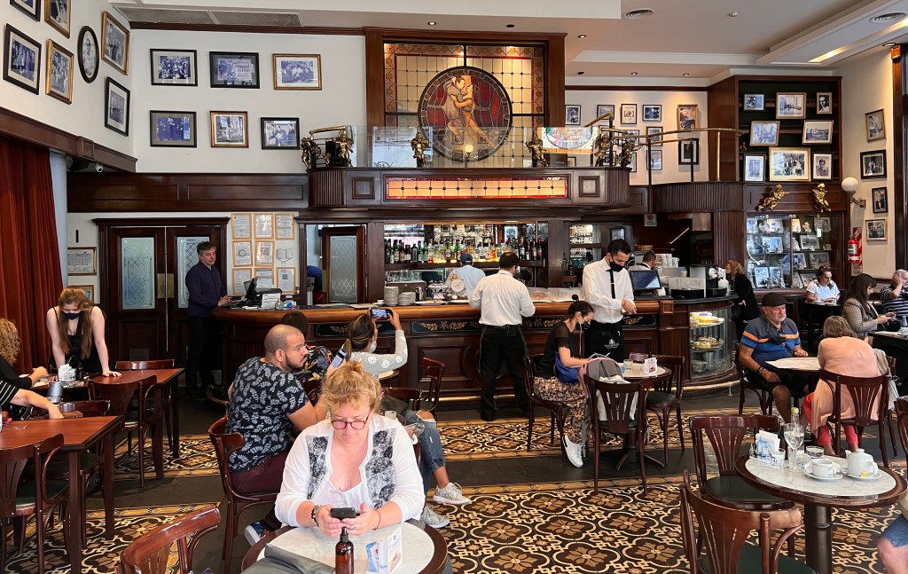 Every day is a school day in Argentina. Today I learned: trust Terry on milongas, but never on cafes! He’d seen our visit to Cafe Tortini, which was beautiful but had mediocre food at tourist prices, and told us we should instead have gone to Cafe de Los Angelitos. So we did, with him. It was beautiful, but had rubbish food at tourist prices.
