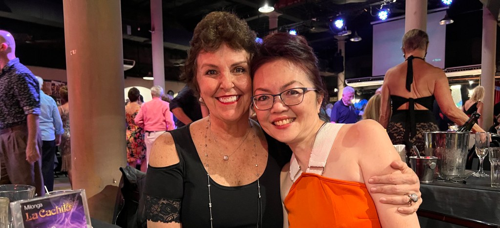 I mean, I’m better than I was at dancing rhythmical tandas, but first impressions count when a stranger is seen in a milonga, so I always want my first tanda to be to music I really like. Tina also feels that slow, lyrical dance shows her off to best effect.