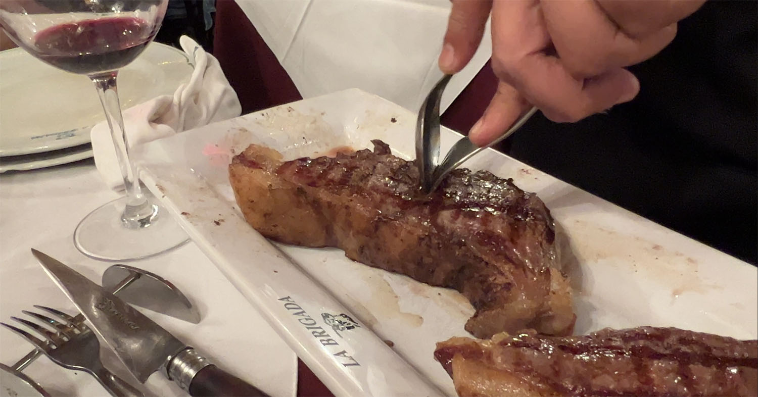 Tina and I had arranged a posh dinner with Diego, and he’d offered us a choice of two steak places. At one of them, Parilla La Brigada, we were told the steak is so tender they actually cut it with a spoon. I felt this had to be seen.