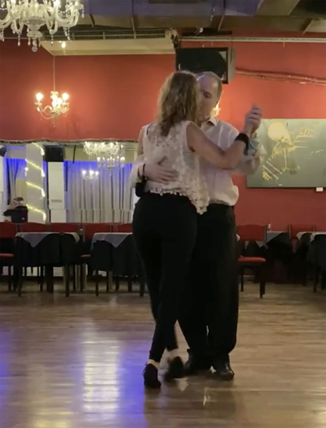 One follower in particular does stand out. The room was thinning out, so there was plenty of room to walk, and she had the most gorgeous walk! She met my forward intention with an absolutely equal amount, and projected fully before transferring her weight, enabling me to take really long steps, and to completely control the pace. That was an absolute joy. Then when I led a parada, paused and relaxed the embrace, she took full advantage!