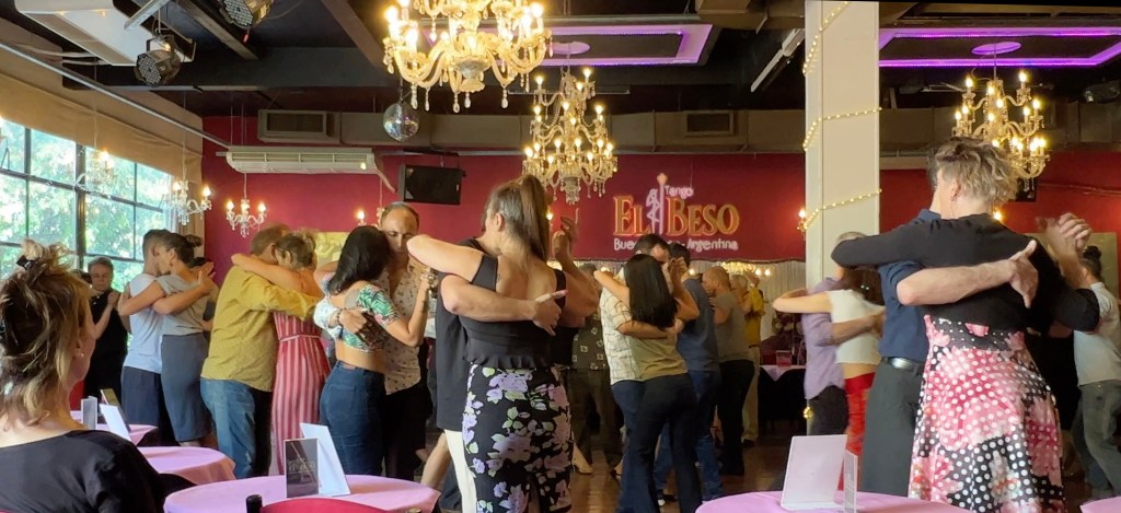 Held at El Beso, La Rosa is a very different Milonga to El Abrazó. Much younger crowd, heavy on the rhythmical music. It mostly wasn’t my music, but I danced about half a dozen tandas.