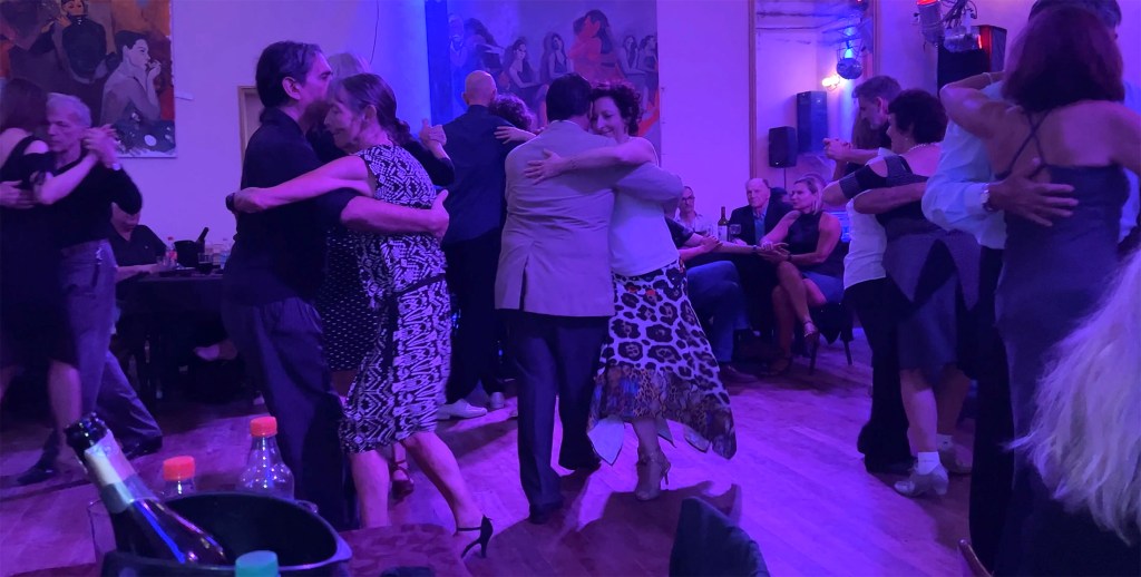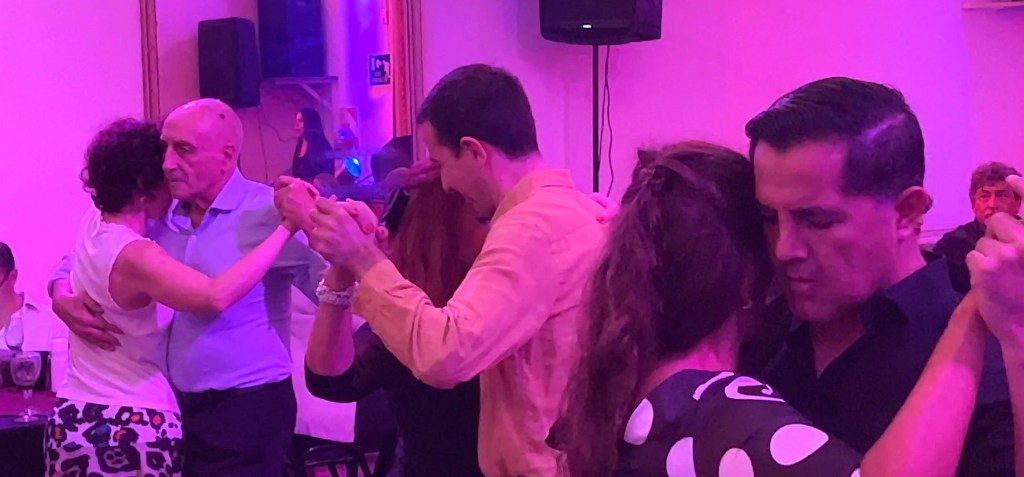 Rita arrived on her own at some point, so I invited her to join our table. It was good to see her and dance with her, and as a bonus it provided an opportunity for Antonio to dance with someone new. He said afterwards this had been his best tanda in Argentina. Given that he’d previously danced with Maria, I wondered whether he’d be sleeping in the park that night – but fortunately she was happy for him!