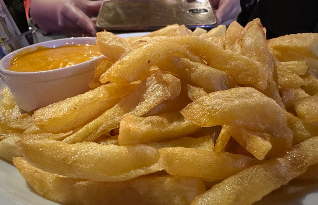 I find I tend not to feel hungry in warmer climates, but it’s a different matter when you actually place food in front of me! Alessandra ordered a portion of cheesy chips, and when it arrived my first thought was to grab a mike and announce that chips for the whole milonga were available at our table. They were delicious, and I helped Ale tackle the chip mountain with far greater enthusiasm than expected, but we still didn’t manage to finish them.