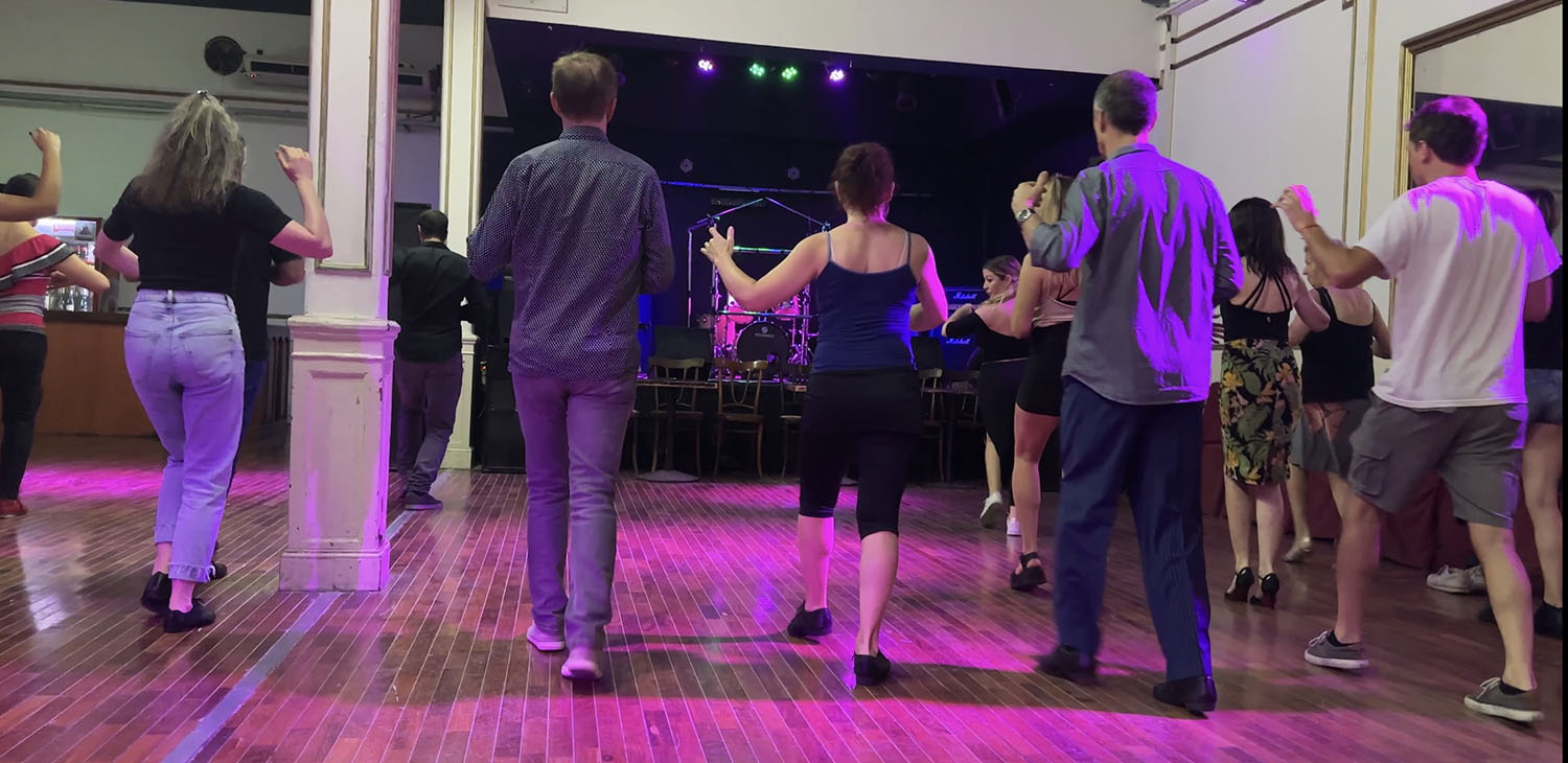 The beginner class was in progress as we arrived, and clearly comprised total beginners through to London intermediate or beyond.