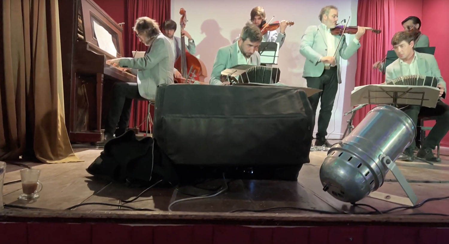 That drama done, the dancing continued. I was dancing at the time with a French-speaking follower from the West Indies I’d danced with twice before at other milongas. She was a really skilled dancer, and great fun, but even I hesitated when the band launched into a very fast milonga. I’m not sufficiently familiar with D’Arienzo to identify the song, but imagine Bandera Baja played at a few thousand beats per minute, and you have the general idea.