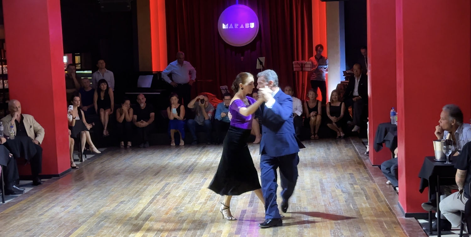 Still, I thought, perhaps people are leaving their arrival until the likely start of the live music, which is generally around 12:30 to 1am. I danced a few tandas, having to really hunt for followers each time, and then the performances began. I decided this was a good time to sit back and sip the now-standard Marabú bucket of Malbec. Last time, I managed to drink about a third of it, tonight it was about 10%.